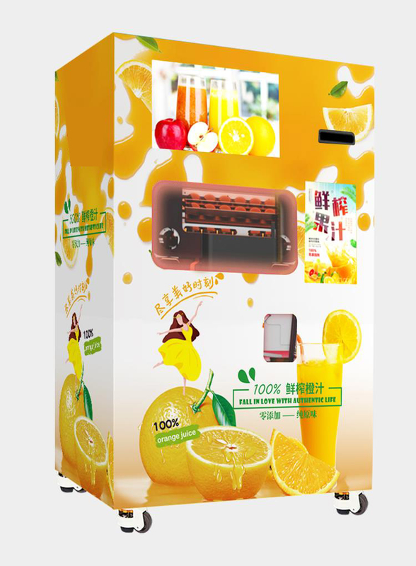 เครื่องจำหน่ายพลังงาน 300W นี้มีเทคโนโลยีการจ่ายน้ำผลไม้อัตโนมัติ ให้บริการน้ำส้มคั้นสด 100% พร้อมกำลังการผลิต 800 ชิ้นต่อเดือน